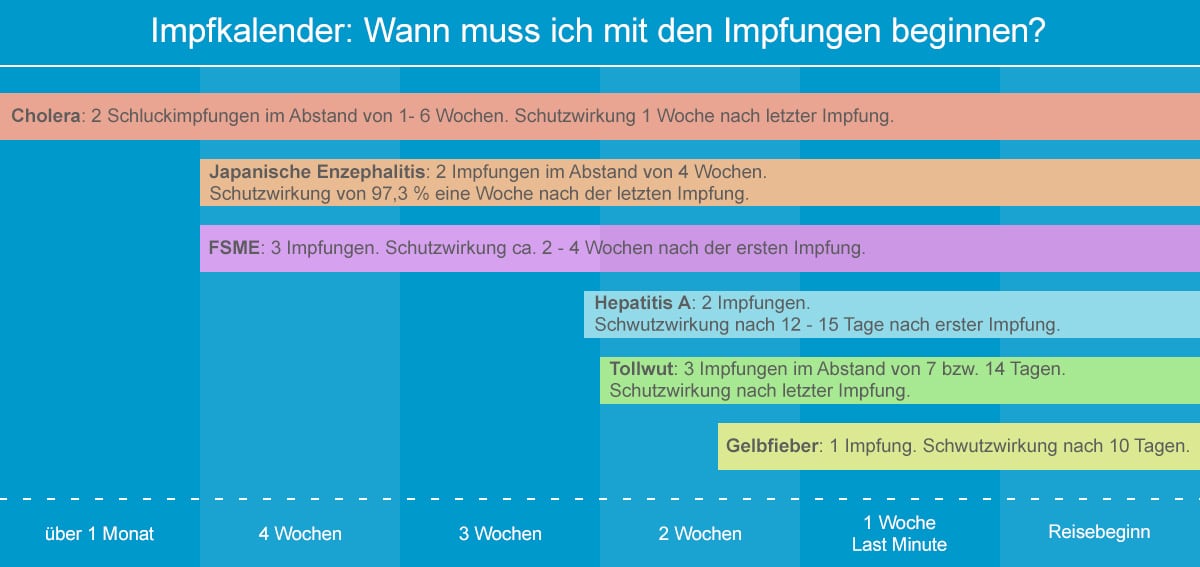 Quand débuter ? N’attendez pas la dernière minute. Certains vaccins nécessitent plusieurs injections espacées de quelques semaines, parfois non combinables. Pour être protégé au départ, anticipez : voyez avec un professionnel les délais nécessaires.