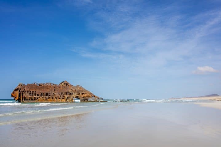- Explorer les épaves rouillées : sur la plage sauvage de Praia da Atlanta à Boa Vista, les carcasses de bateaux rappellent l’histoire maritime de l’archipel.